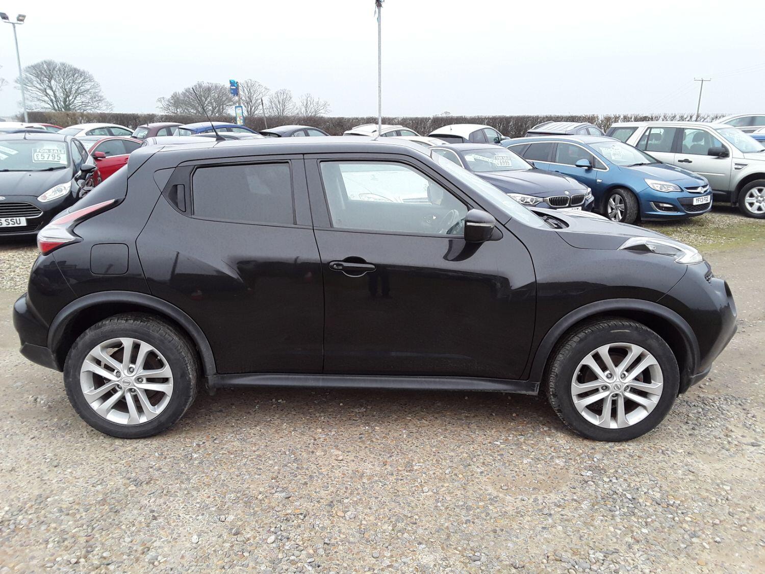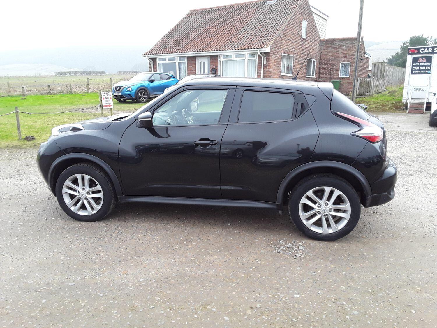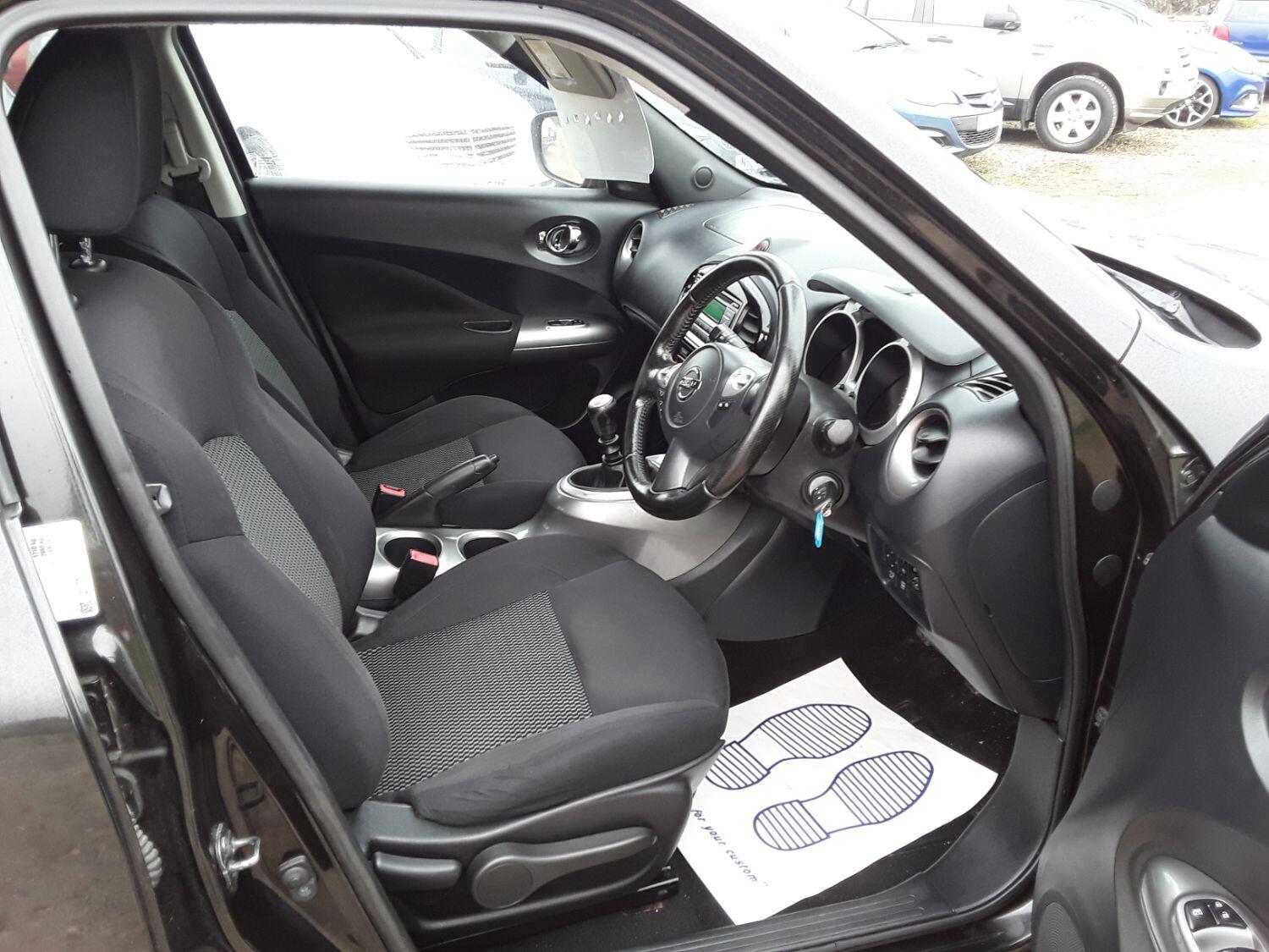 JET BLACK WITH BLACK CLOTH SEATS. NISSAN JUKE 1.2 ACENTA DIG -T 5 DOOR PETROL.LOW MILEAGE OF 62,000 MILES FULL SERVICE HISTORY. 1.2 TURBO.SUPERB TO DRIVE.REALLY NICE CONDITION INSIDE AND OUT. LONG M.O.T.WILL BE SOLD WITH FRESH SERVICE TO BRING THE BOOK UP TO DATE. 2 REMOTE KEYS.GREAT POPULAR CAR.1ST TO SEE WILL BUY.